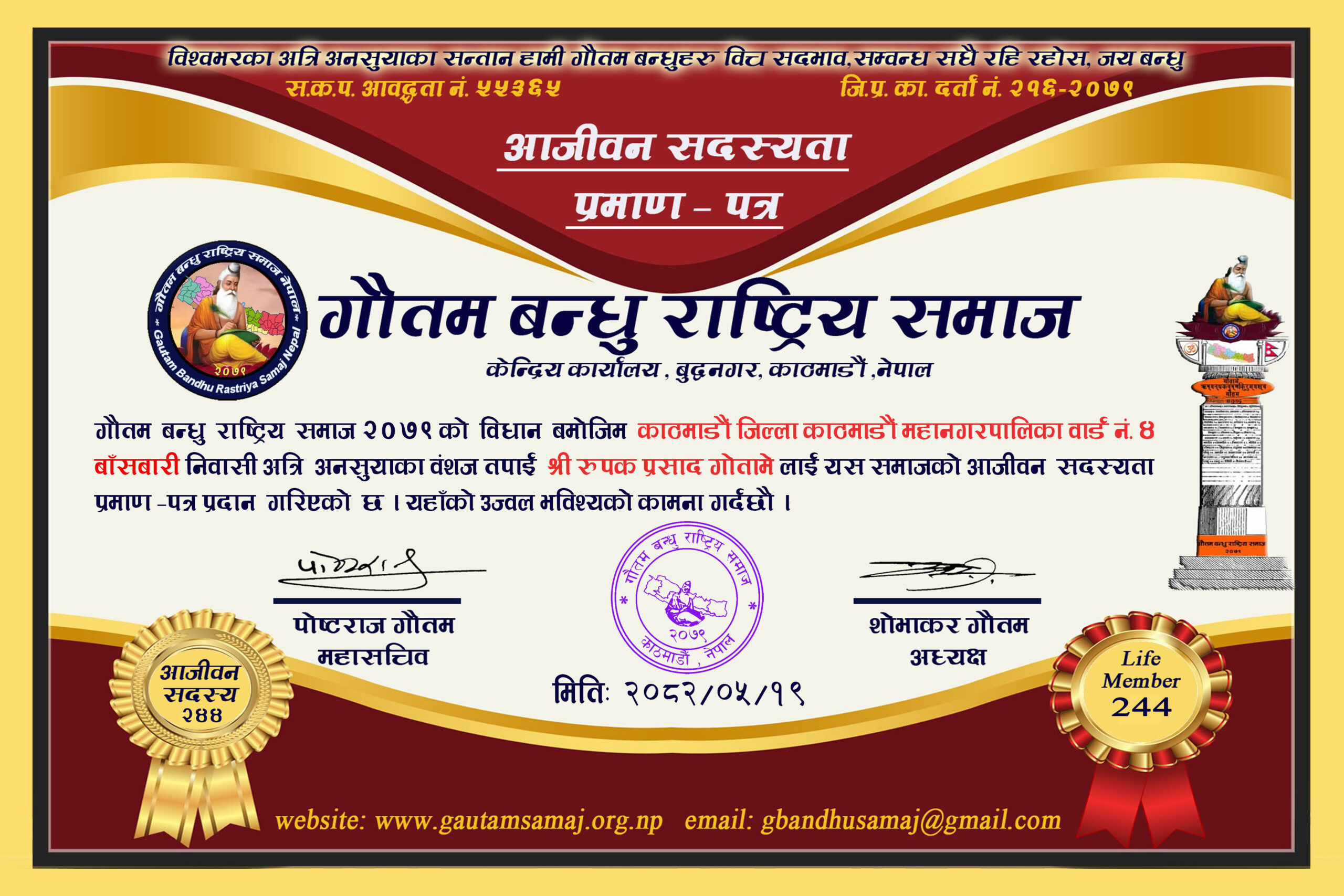 २४४ रुपक प्रसाद गोतामे काठमाडौ महानगरपालिका ४, बाँसबारी काठमाडौं २०८२/०५/१९